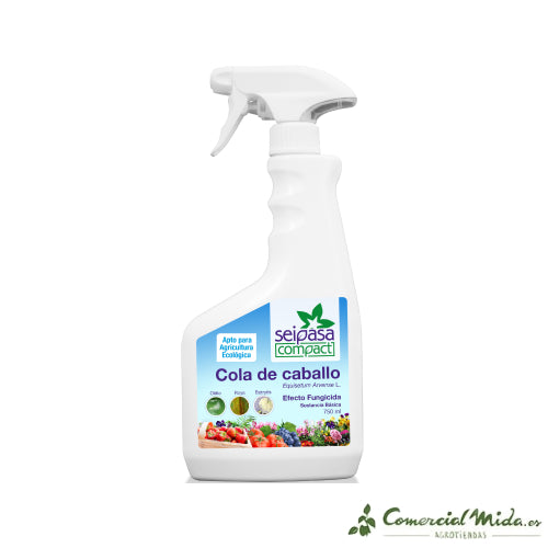 La Cola de Caballo de Seipasa Compact es un producto natural elaborado a partir del extracto de Equisetum arvense L, está autorizado como sustancia básica para el control de un amplio abanico de enfermedades fúngicas como el oídio, la botrytis, mildiu y alternaria entre otros. También tiene un efecto estimulador de los mecanismos de defensa de la planta para mejorar la respuesta del cultivo frente al ataque de diferentes hongos. Aporta mayor engrosamiento en las paredes celulares proporcionando mayor resistencia mecánica a la entrada de hongos. Contiene un efecto secante sobre la superficie del cultivo para impedir los excesos de humedad, deshidratando las esporas y micelios del hongo.