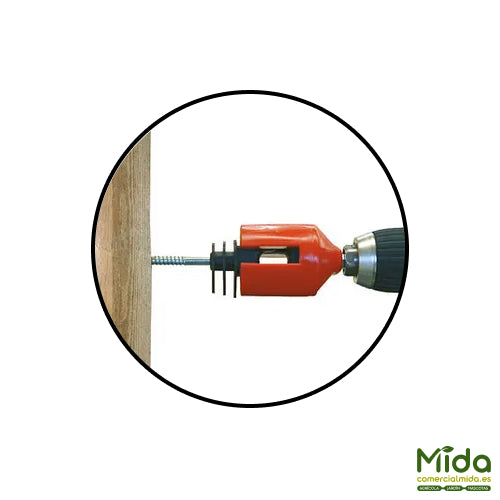 Adaptador para taladros que facilita la colocación de los aisladores redondos en los postes de cercos eléctricos.