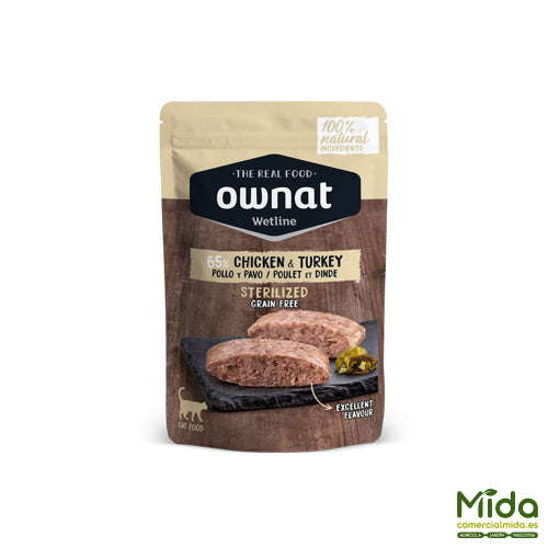 Alimento Húmedo OWNAT Wetline Pouch Sterilized Chicken & Turkey para Gatos