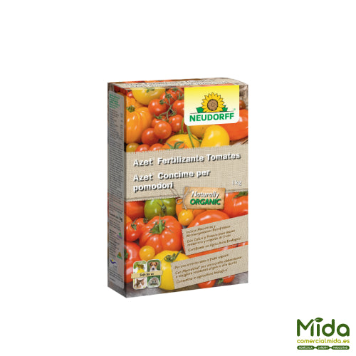 El abono granulado ecológico Azet Neudorff para Tomates tiene origen animal y vegetal por lo que resulta un fertilizante orgánico ideal para asegurar el crecimiento enérgico así como dar una cosecha provechosa y abundante. Contiene la dosis de potasio necesaria para conseguir que los tomates sean ricos en sabor y alcancen la maduración ideal. Este abono NPK 7-3-10 tiene efecto inmediato y duradero hasta 3 meses.