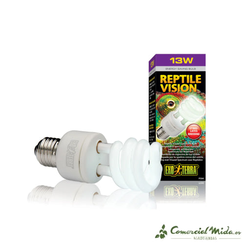 La Reptile Vision Exo Terra es una bombilla especialmente diseñada para la visión de los reptiles, optimizando su percepción del entorno gracias a su espectro de luz adaptado a su sistema visual de cuatro receptores. A diferencia de las bombillas convencionales diseñadas para la visión humana, la Reptile Vision alcanza longitudes de onda esenciales para los reptiles, mejorando su percepción del color y el comportamiento natural. Su uso contribuye al bienestar fisiológico y mejora las condiciones de vida de los reptiles en cautiverio.