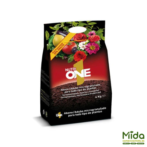 Fertilizante excepcional para cualquier planta ornamental, de huerto o frutal. Nutri One Granulado Premium está compuesto por extractos vegetales con múltiples nutrientes microgranulados para aportar un crecimiento fugaz a plantas, árboles y arbustos de jardín o huerto con un montón de fruto y flores. Sustituto natural del Bayer Garden Top Crecimiento Granulado.