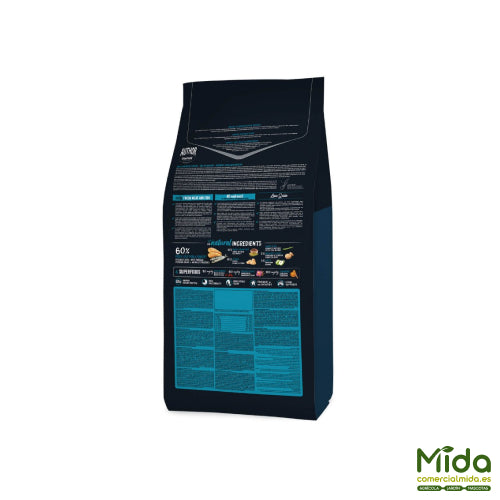 • Fórmula muy apetente: combinación de pescado azul, gallina y pato frescos.