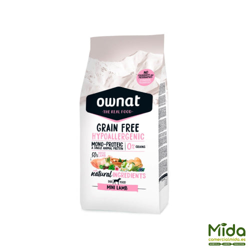 Pienso OWNAT Grain Free Hypo Mini Lamb, el mejor pienso libre de cereales para perros adultos mini (1-10 kg) de Ownat.