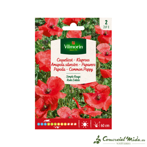 Las mejores semillas de Flores Altas de Vilmorin para cultivar Amapola Silvestre Simple Roja.
