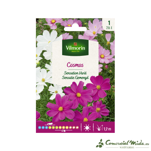 Las mejores semillas de Flores Altas de Vilmorin para cultivar Cosmos Sensación Variado.